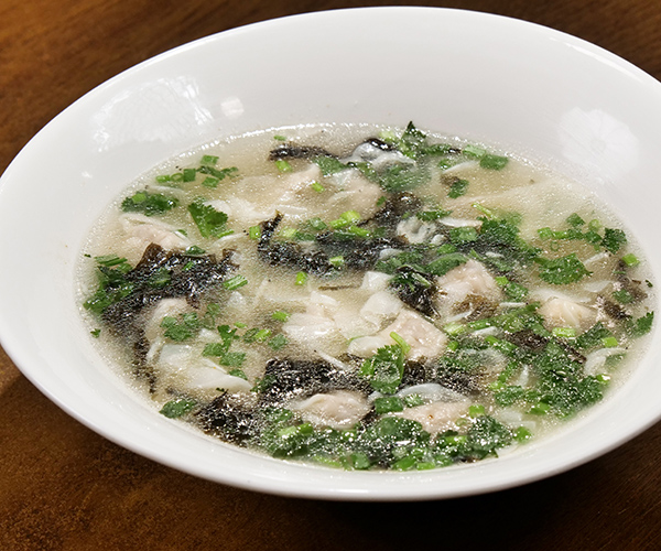 4Add water, Anji Seafood Powder, Anji Chicken Essence, and salt to boil in the pot. Pour into the small Wonton and cook until done.