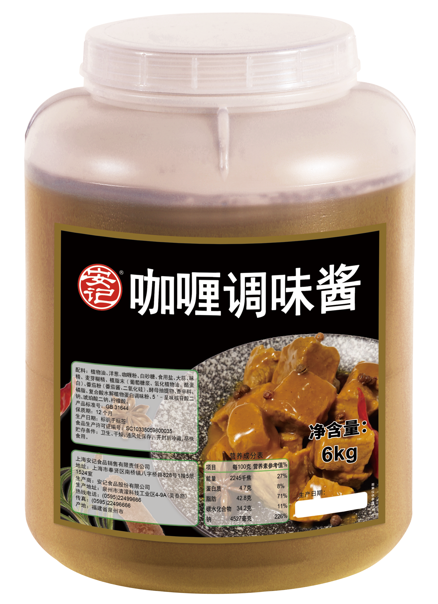 (桶裝)6000g安記咖喱醬2桶裝(烹飪)